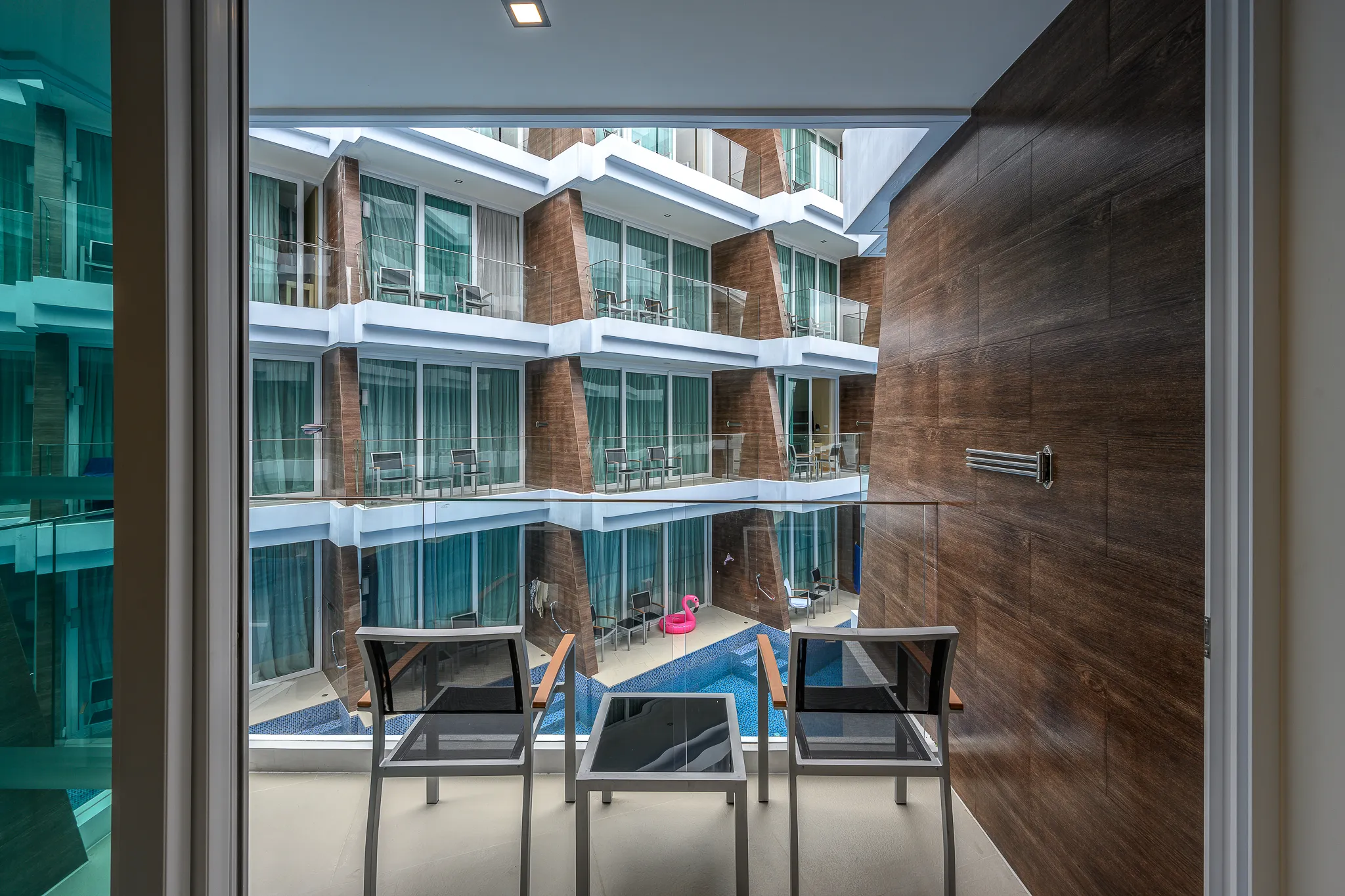 The Deluxe Rooms come with double or twin beds. The fully equipped kitchenette features a two-door fridge, a stove with exhaust hood, a sink, and a microwave. Every room offers both indoor and outdoor seating areas with either a terrace or a balcony.
